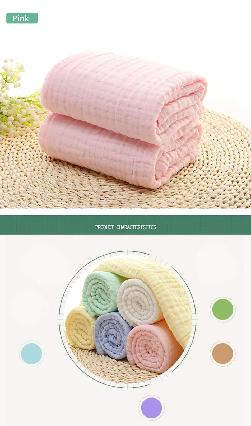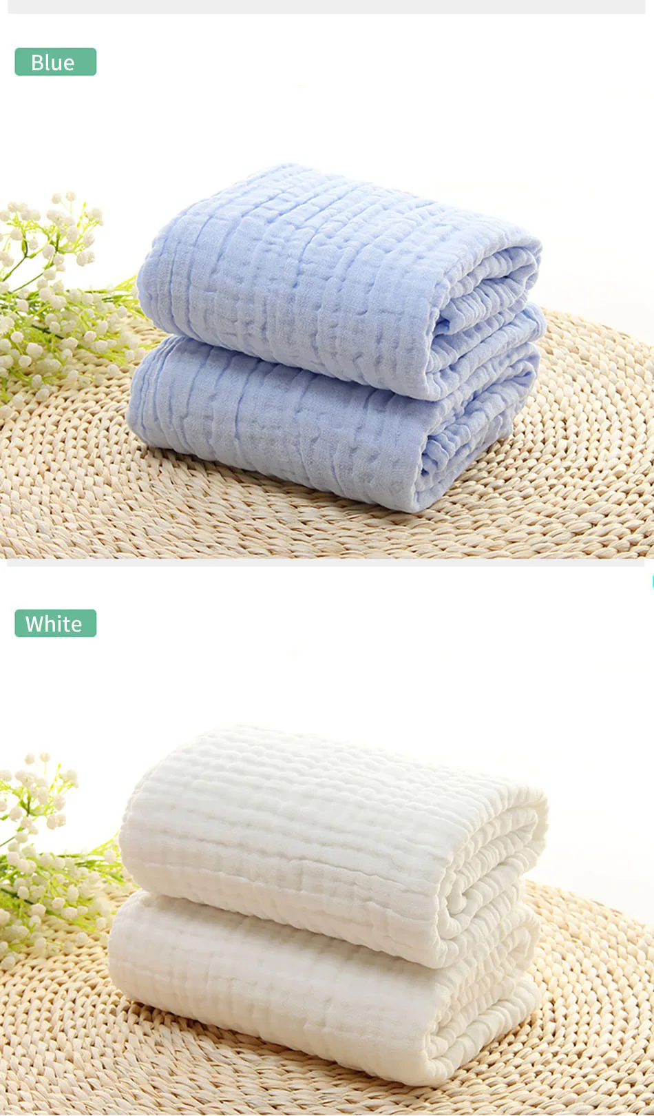 Name:Cotton Muslin 6 Layer Baby Blankets Soft Thickened Warmth and Breathable Cozy Ideal for Swaddling and Air Conditioning Rooms Use